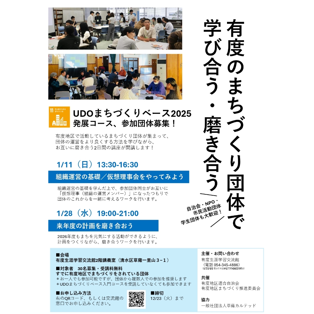 | 対象者/定員 | 有度地区ですでにまちづくりの活動をされている団体 30人 |